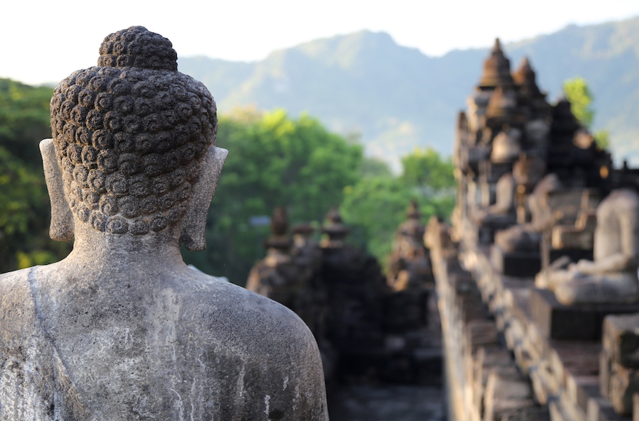 Begin your sacred day in the wee hours of the morning (we woke up at 3:30am!) with the sunrise over Borobudur Temple. The UNESCO World Heritage site is set on a mountaintop in central Java, amidst volcanoes and lush forest. It is the world’s largest Buddhist temple, with over 500 Buddha statues scattered around the site.